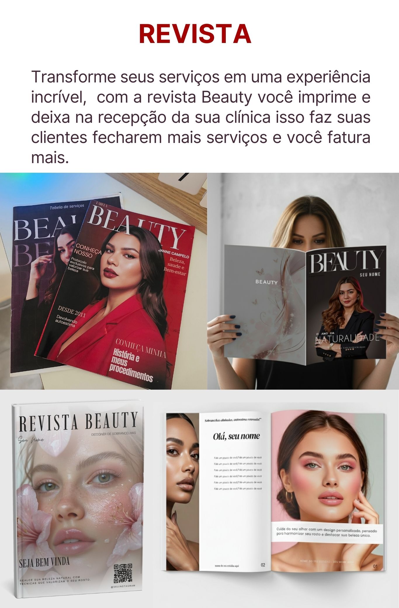 Assim como a revista Beauty e o folder, apresente seus serviços com o nosso jornal Beauty, diferente dos concorrentes. Modelo disponível rosa, breve outras cores