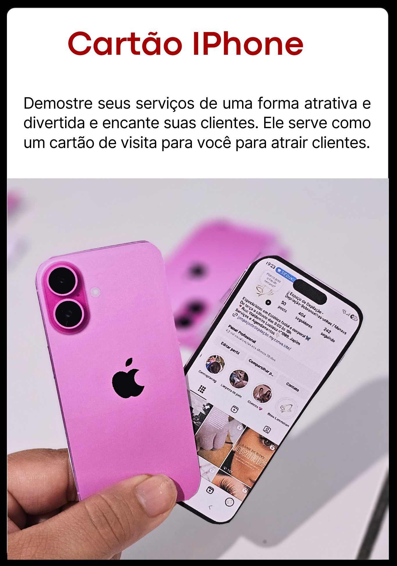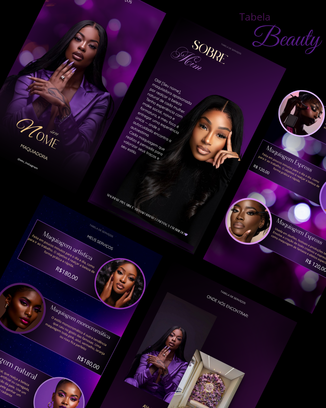 Criei materiais como tabelas de valores editáveis, catálogos e cards personalizados e entre outros. Feitos com muito cuidado para ajudar quem vive da beleza a transmitir profissionalismo, atrair mais clientes e vender com confiança.