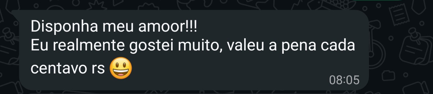 Eis aqui o nosso acordo: Você tem 7 dias para experimentar o conteúdo e se ainda achar que ele não faz sentido para você, basta enviar um pedido para minha equipe e nós reembolsaremos 100% do valor pago.