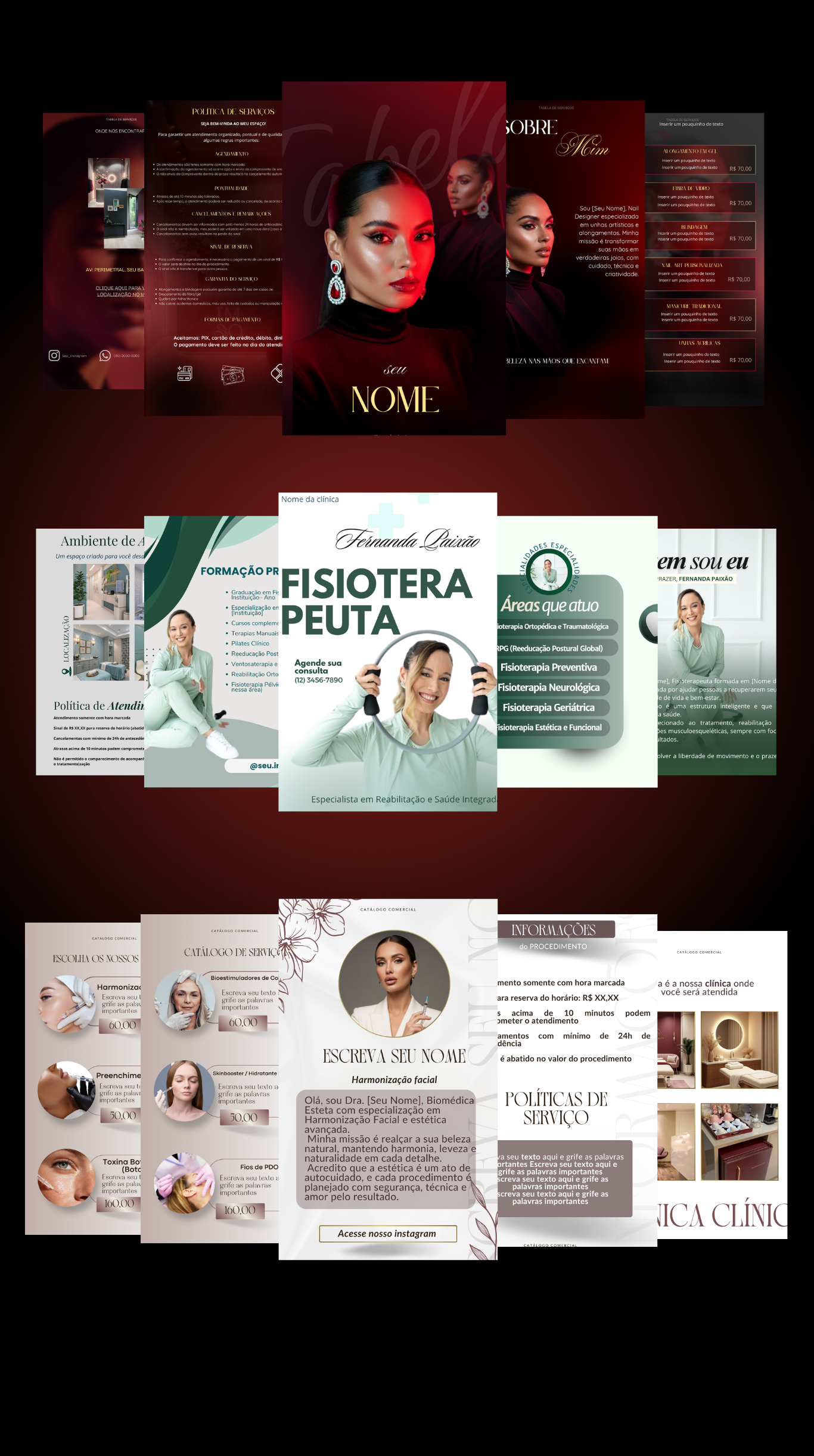 Portfólio várias profissões, harmonização facial, Massoterapeuta, Fisioterapeuta, Estética Avançada, Bronzeamento e muito mais